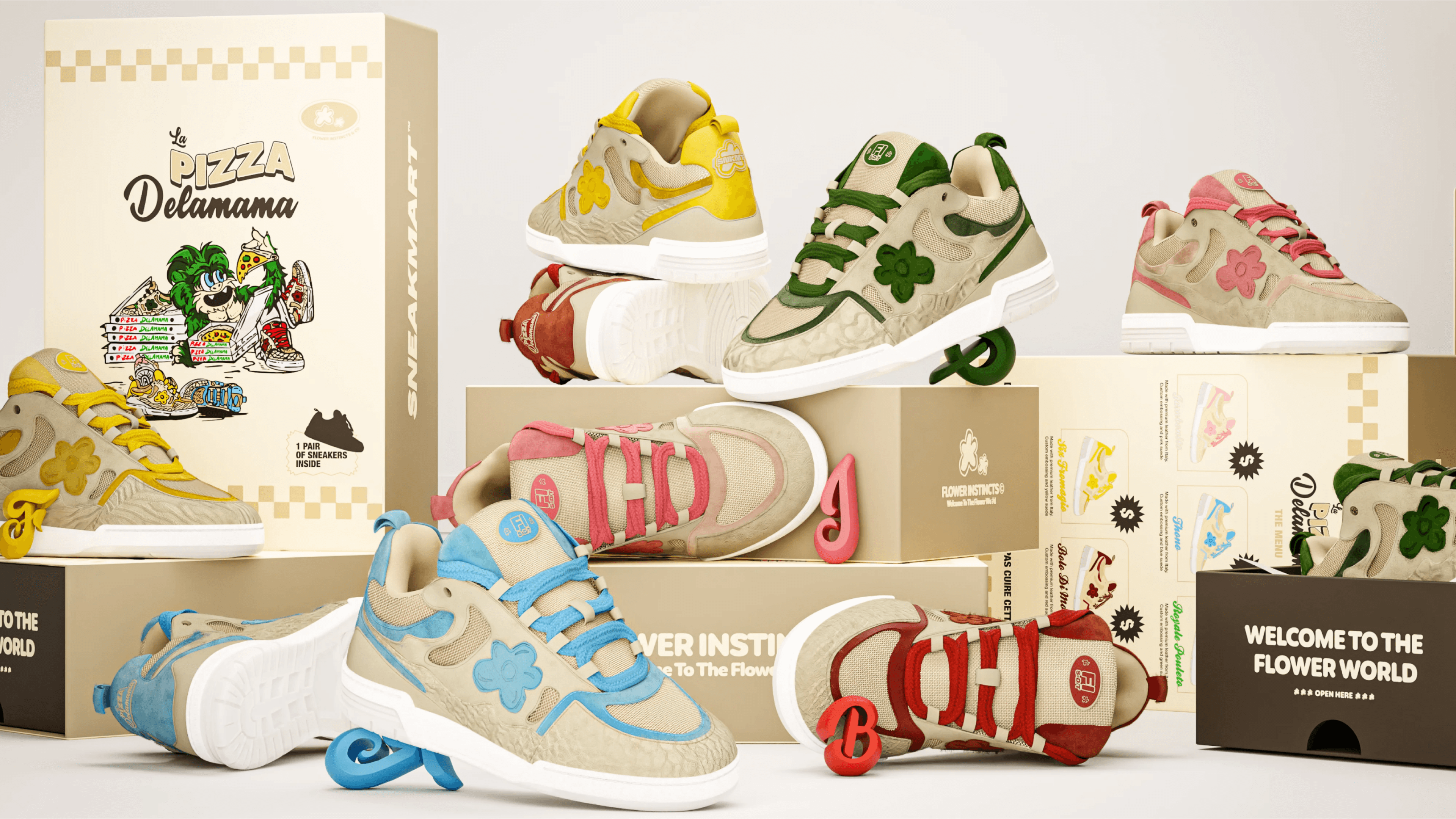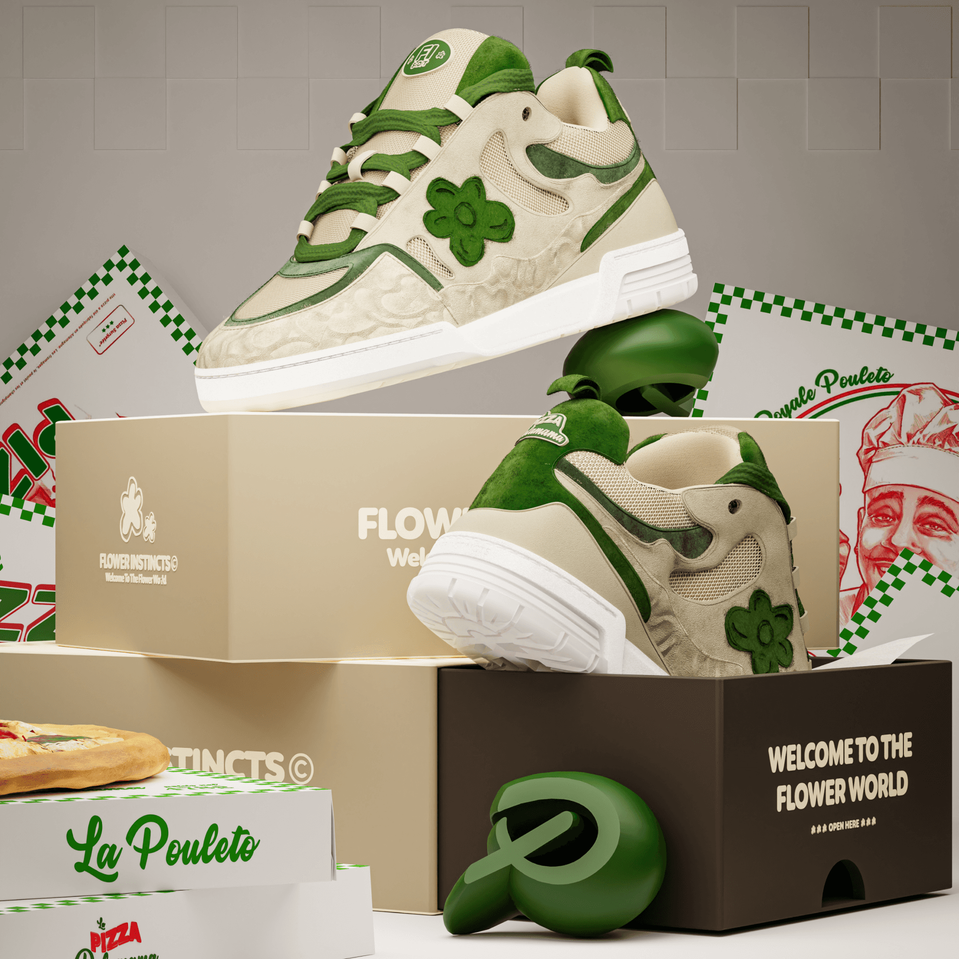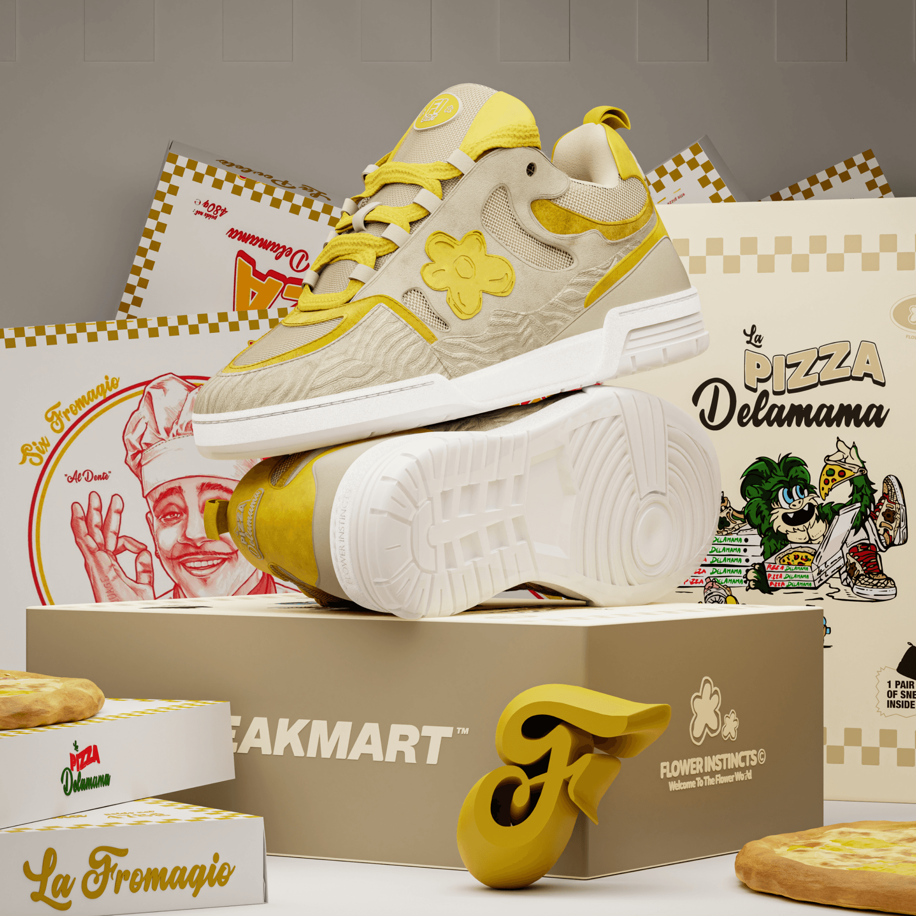 In this project, we collaborated with Pizza Delamama, the food brand created by Mister V, alongside Flower Instincts, to craft a unique crossover between gastronomy and streetwear through a series of limited-edition sneakers inspired by iconic pizza flavors.