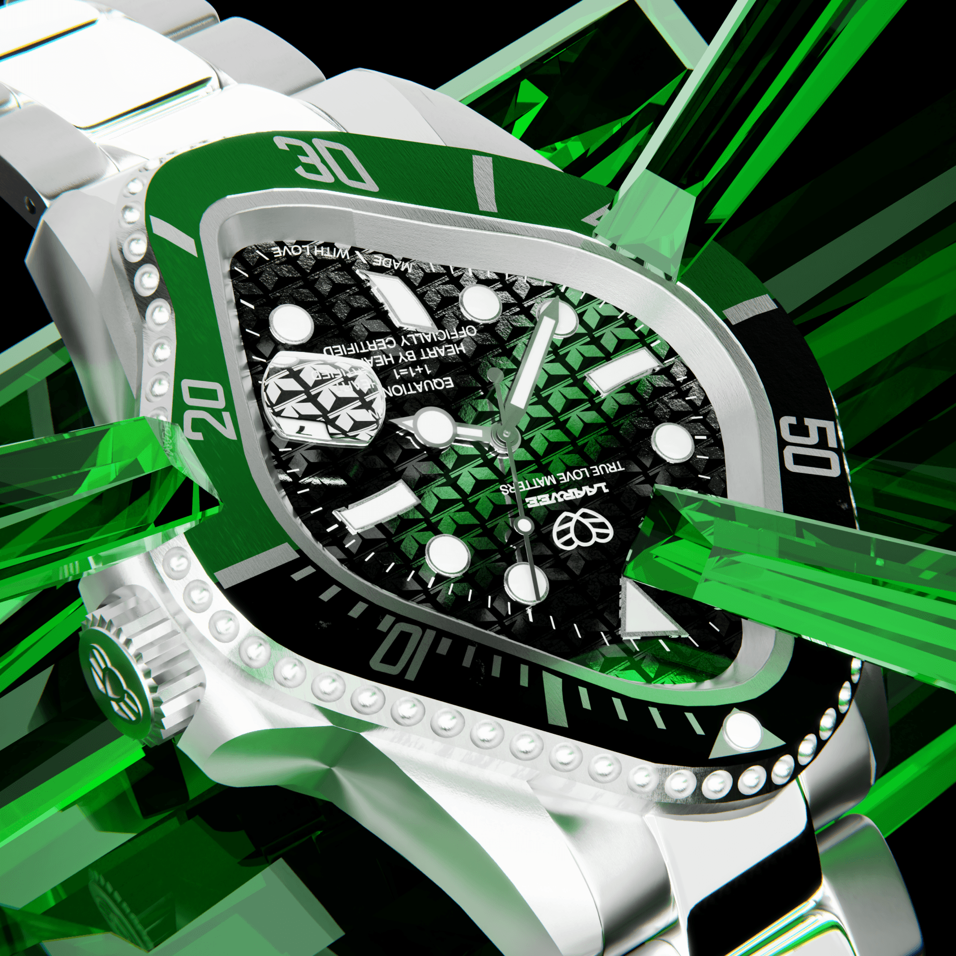 In this project, we collaborated with Laarvee to introduce the PEA001 ‘Emerald’, a limited-edition timepiece released in only 100 units worldwide. Conceived as the precursor to the ‘ICE’, the project set the foundation for a series of collectible watches defined by storytelling, rarity, and craftsmanship.